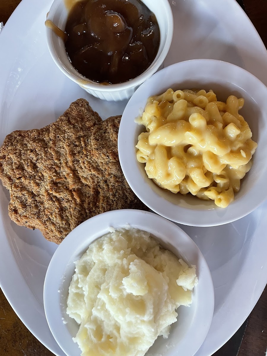 I got the tilapia, mashed potatoes, green beans, and cornbread with some unsweetened tea. The waitresses are outstanding, kind courteous the food is amazing. Oh my God I mean the price is very reasonable and again this is outstanding.